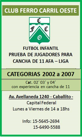 BERAZATEGUI. CAT. 2001 2002 2003 2004 Y 2005. Martes, miércoles y viernes. 15 hs. Estadio: Juan Maniel Fangio y calle 16, Berazategui.